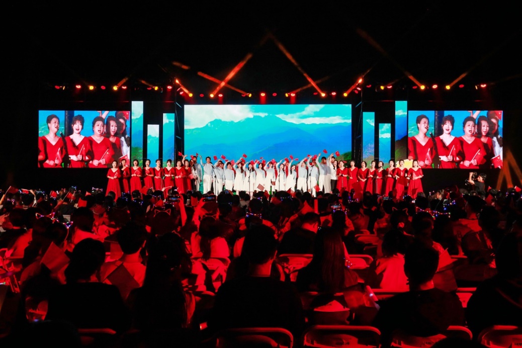 十佳歌手聯(lián)袂獻(xiàn)唱的《我愛你中國(guó)》向祖國(guó)送出最深情的告白,用歌聲獻(xiàn)禮祖國(guó)華誕。大屏幕上一幅幅中國(guó)壯麗風(fēng)光、建設(shè)成就和人民幸福生活的影像徐徐展開,與歌聲交織成一曲動(dòng)人的視聽交響。 “我愛你中國(guó),心愛的母親”唱響時(shí),全場(chǎng)觀眾深受感染,情不自禁地起身?yè)]動(dòng)手中的國(guó)旗,一同加入合唱。霎時(shí)間,草坪化為一片涌動(dòng)的紅色海洋,激昂的歌聲與澎湃的激情交織,將晚會(huì)現(xiàn)場(chǎng)化作一堂生動(dòng)而深刻的愛國(guó)主義課堂。