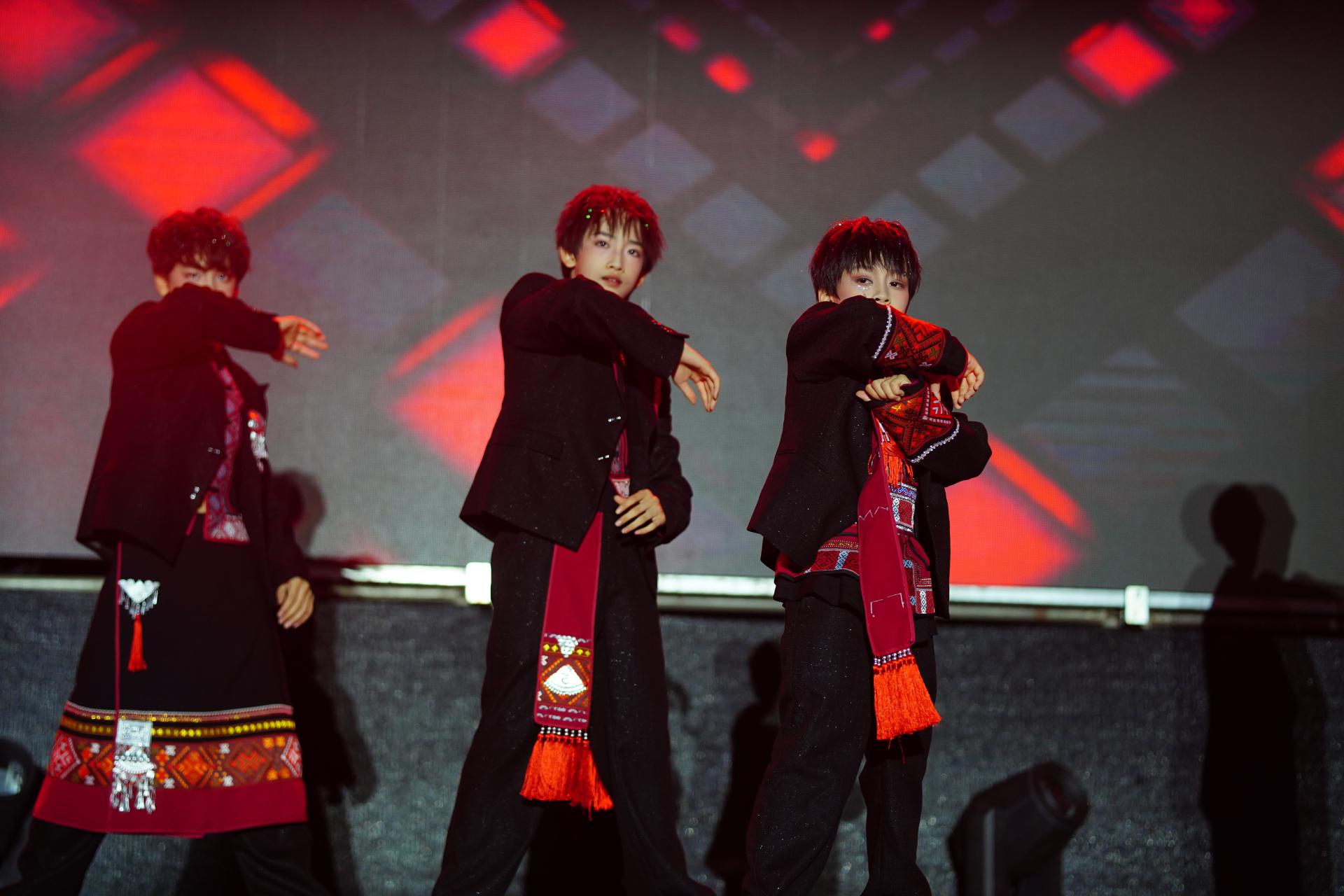 民族國潮音樂節(jié)是整場活動(dòng)的高潮,三大篇章層層遞進(jìn),用音樂與舞臺藝術(shù)詮釋非遺文化的傳承脈絡(luò)。第一篇章“非遺・源” 以大型綜合歌舞劇為載體,原生態(tài)民歌的清亮旋律、壯族天琴彈唱的悠揚(yáng)曲調(diào)、原生態(tài)民族舞蹈的靈動(dòng)身姿,搭配身著壯錦盛裝的演員走秀——服飾上的 “萬字紋”“水波紋” 在燈光下熠熠生輝,仿佛將觀眾帶回民族文化誕生的源頭,沉浸式感受傳統(tǒng)文化的厚重。第二篇章 “非遺・承” 聚焦青春力量,南國少年團(tuán)帶來量身打造的國潮表演:唱跳曲目融入壯族元素的歡快旋律,說唱歌詞講述非遺傳承的當(dāng)代故事,年輕演員們充滿活力的演繹,展現(xiàn)出青少年對民族文化的創(chuàng)新理解,讓傳統(tǒng)與青春碰撞出別樣火花。第三篇章“非遺・燃” 邀請無限活力組合等廣西本土知名歌手與音樂組合登臺,他們將壯族山歌的高亢曲調(diào)與現(xiàn)代電子音樂的強(qiáng)烈節(jié)奏相結(jié)合,傳統(tǒng)歌詞經(jīng)潮流編曲后,既保留民族韻味,又充滿時(shí)尚感,熟悉的旋律瞬間點(diǎn)燃現(xiàn)場,臺下觀眾跟著節(jié)奏揮舞手臂,形成熱烈的互動(dòng)氛圍。