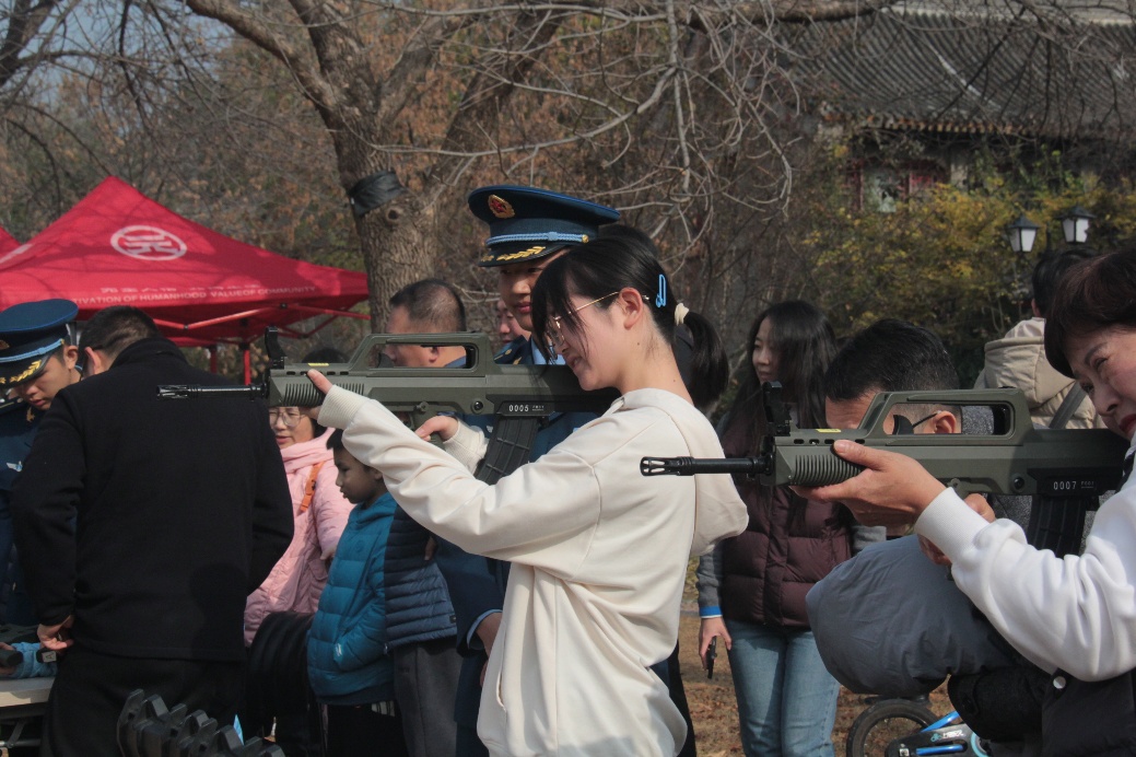 在靜園草坪和一體射箭場(chǎng),介紹空軍發(fā)展歷史與各主戰(zhàn)機(jī)型的展板依次排列,吉祥物“空空”與師生親切互動(dòng)。師生們通過參與各類趣味項(xiàng)目,親身體驗(yàn)飛行學(xué)員的選拔、訓(xùn)練與飛行活動(dòng),感受新時(shí)代人民空軍的精神風(fēng)貌。