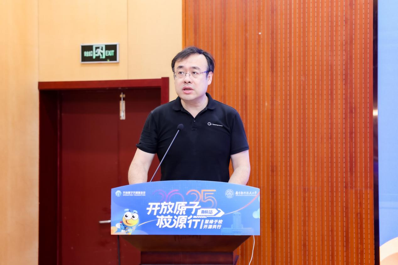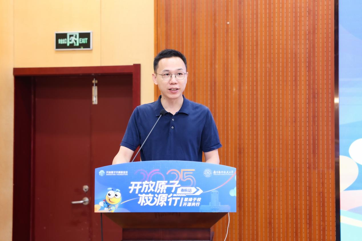 計(jì)算機(jī)學(xué)院院長(zhǎng)黃圣君致歡迎辭,對(duì)支持本次活動(dòng)的專家表示感謝。他提到,開源成為培育未來(lái)科技精英的重要驅(qū)動(dòng)力,希望同學(xué)們保持好奇,不斷嘗試,與全球開發(fā)者共同攻克技術(shù)難題,用代碼改變世界,在服務(wù)國(guó)家戰(zhàn)略中實(shí)現(xiàn)人生價(jià)值。通過(guò)此次校源行活動(dòng),學(xué)院將不斷探索開源育人模式,厚培開源教育底座,助力提升軟件科技源頭創(chuàng)新和軟件技術(shù)供給能力。